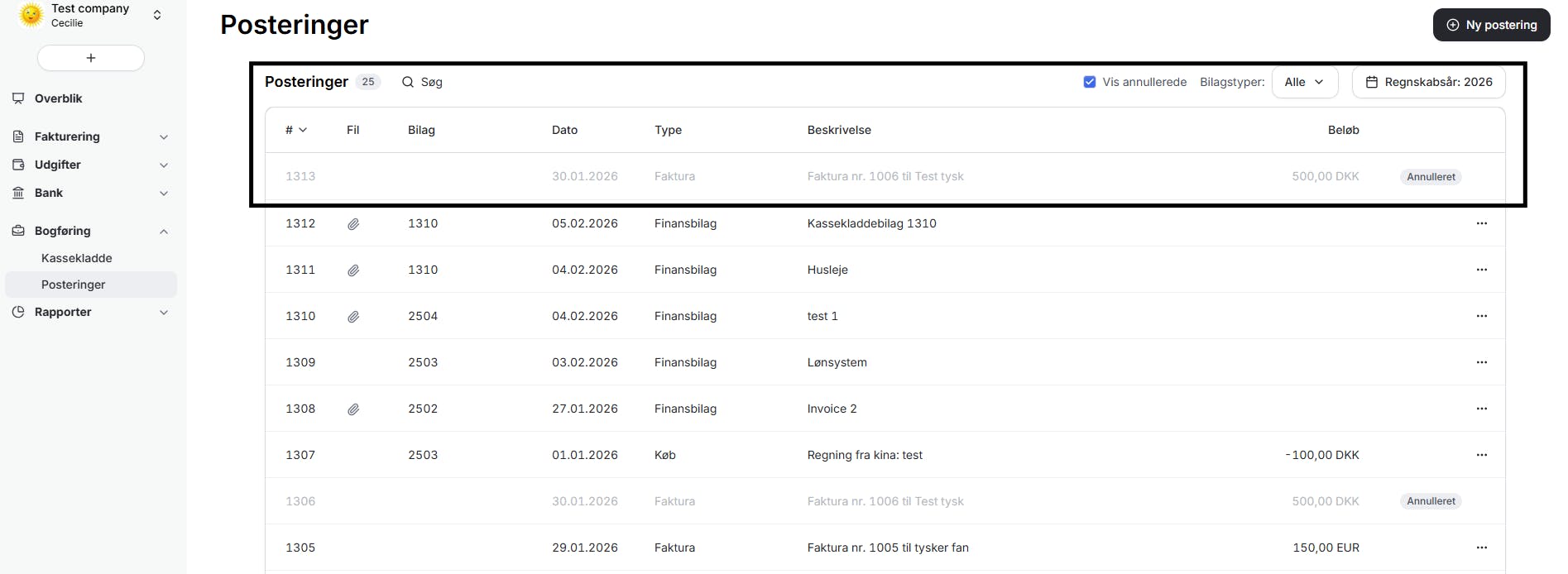- Vælg Posteringer