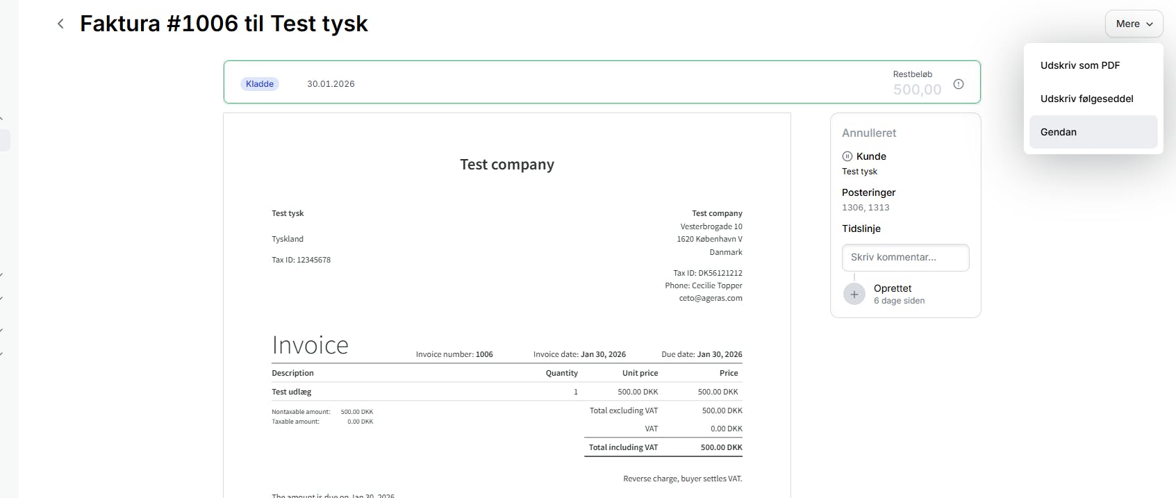- Klik på den annullerede faktura
